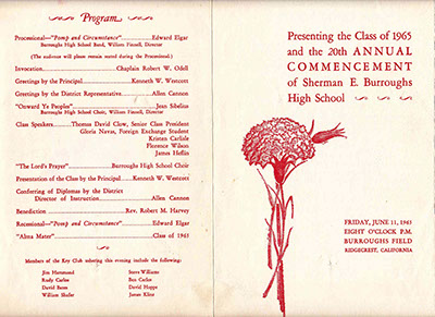 Murray graduation program, Murray class photos, Groves class photos, and Richmond class photos were contributed by Fran Riggs Fenical. Additional class photos from other schools and/or memorabilia would be much apprciated. Email us at charlotte@burroughsridgecrestclassof65.org