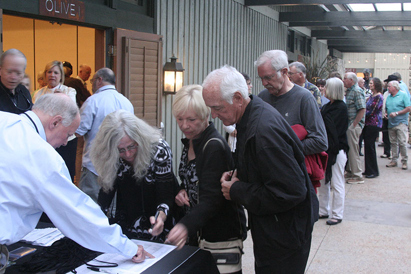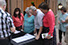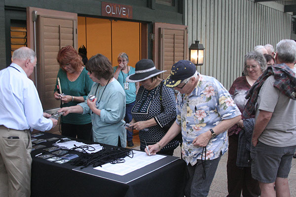 9. Checking in. Rose Marie DeLeon in the black hat.