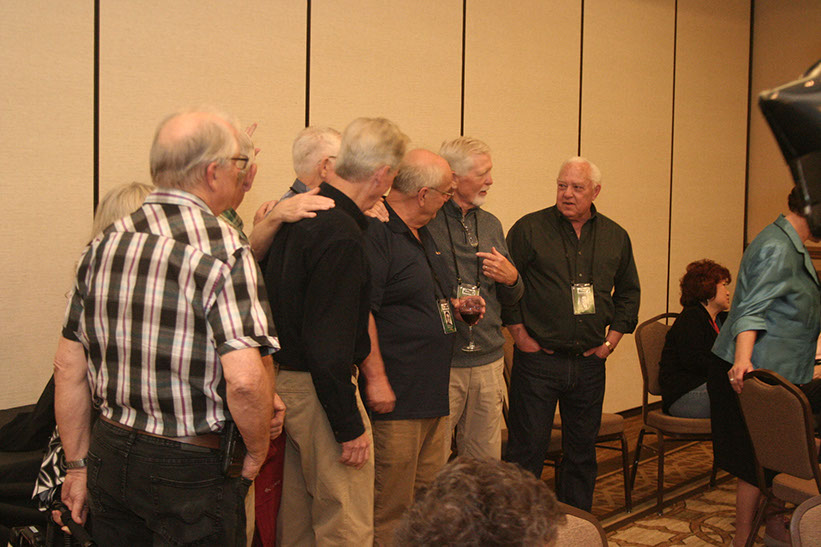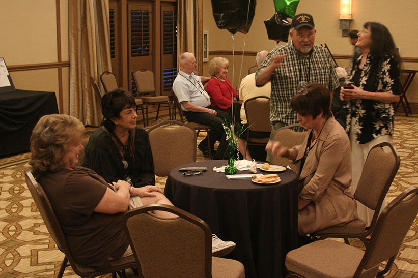 4. Rob Olsen, Carolyn Baldwin Martinez, Diane Saurey Lee, Fred Toombs with wife Pauline Toombs; in background Paulette Bauer Falco.