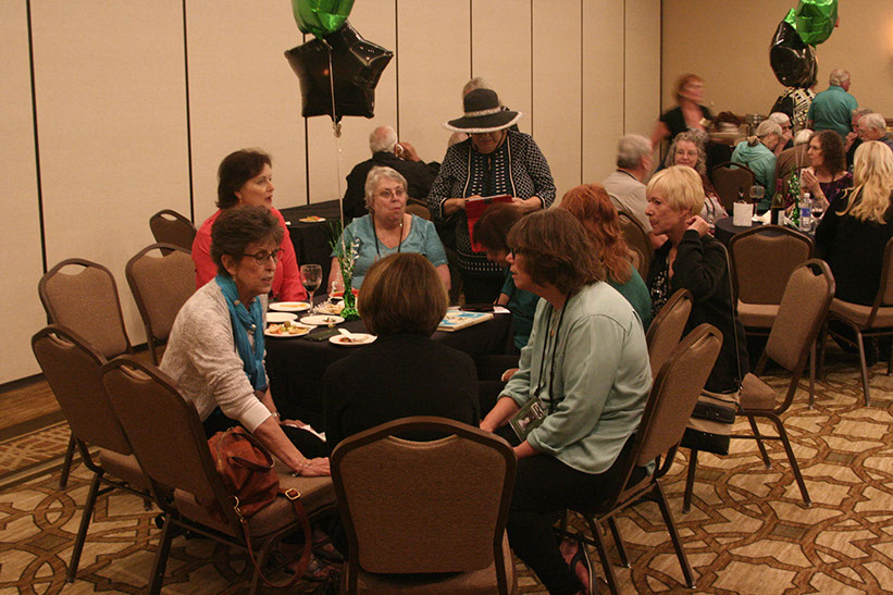 27. Around the table; Karen Day Manatt, Pauline Toombs, Diane Saurey Lee, standing with hat Rose Marie DeLeon Walters, Donna Willis Andreas ’66, Cheri Etheredge Rockwell Davenport ’66, Paulette Bauer Falco, back of Jeanette Jones Miller.